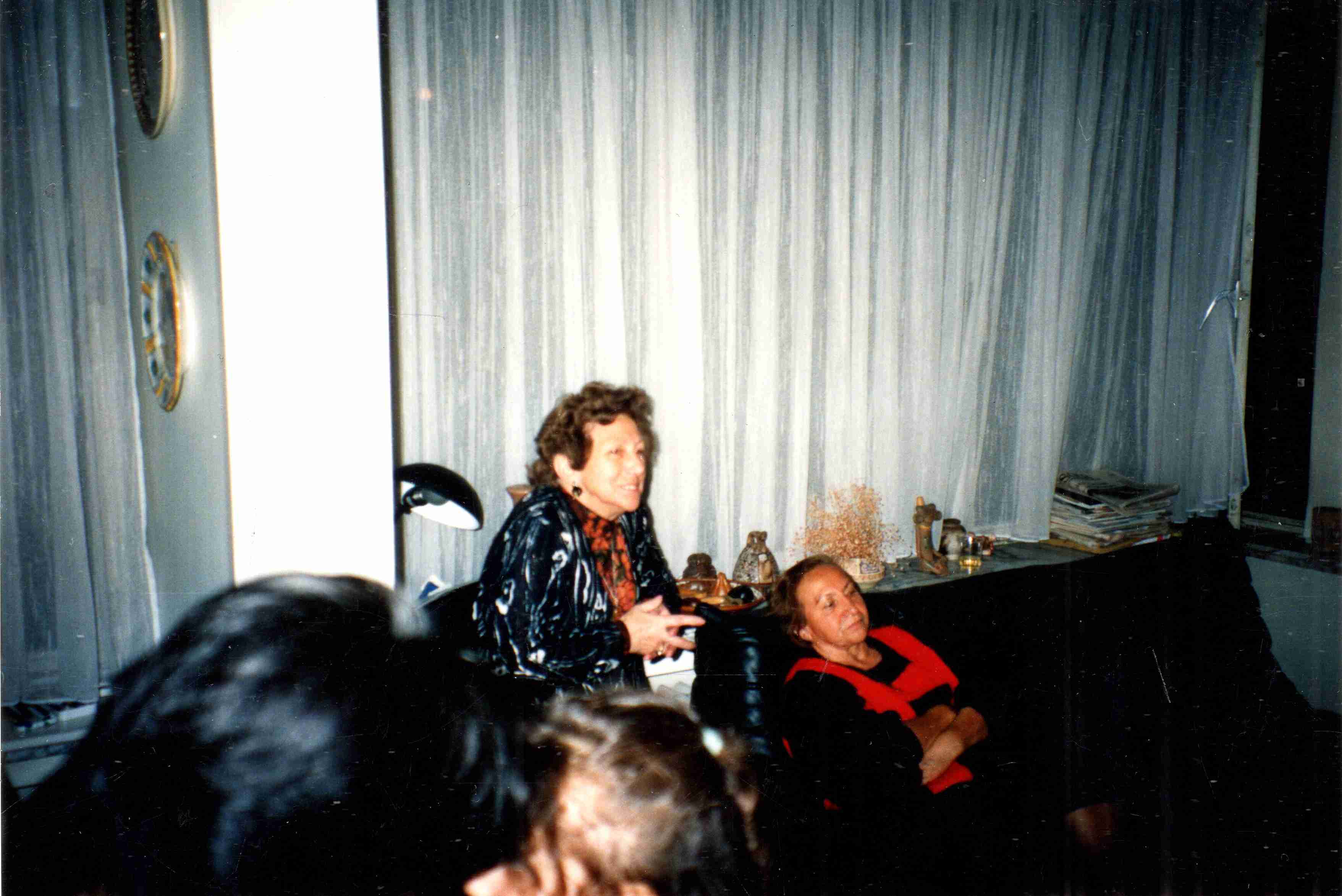 Fotografía de actividad de juicio a Augusto Pinochet, se ve a Magdalena sentada junto a otra mujer.