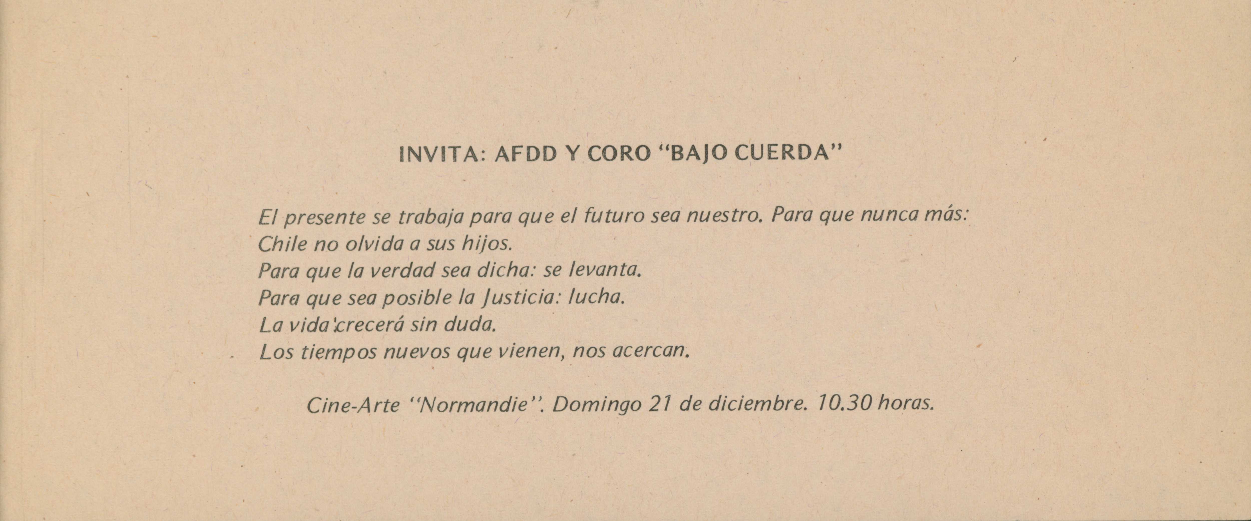 Invitación de AFDD y Coro "Bajo Cuerda" a una reunion en el Cine-Arte Normandie.